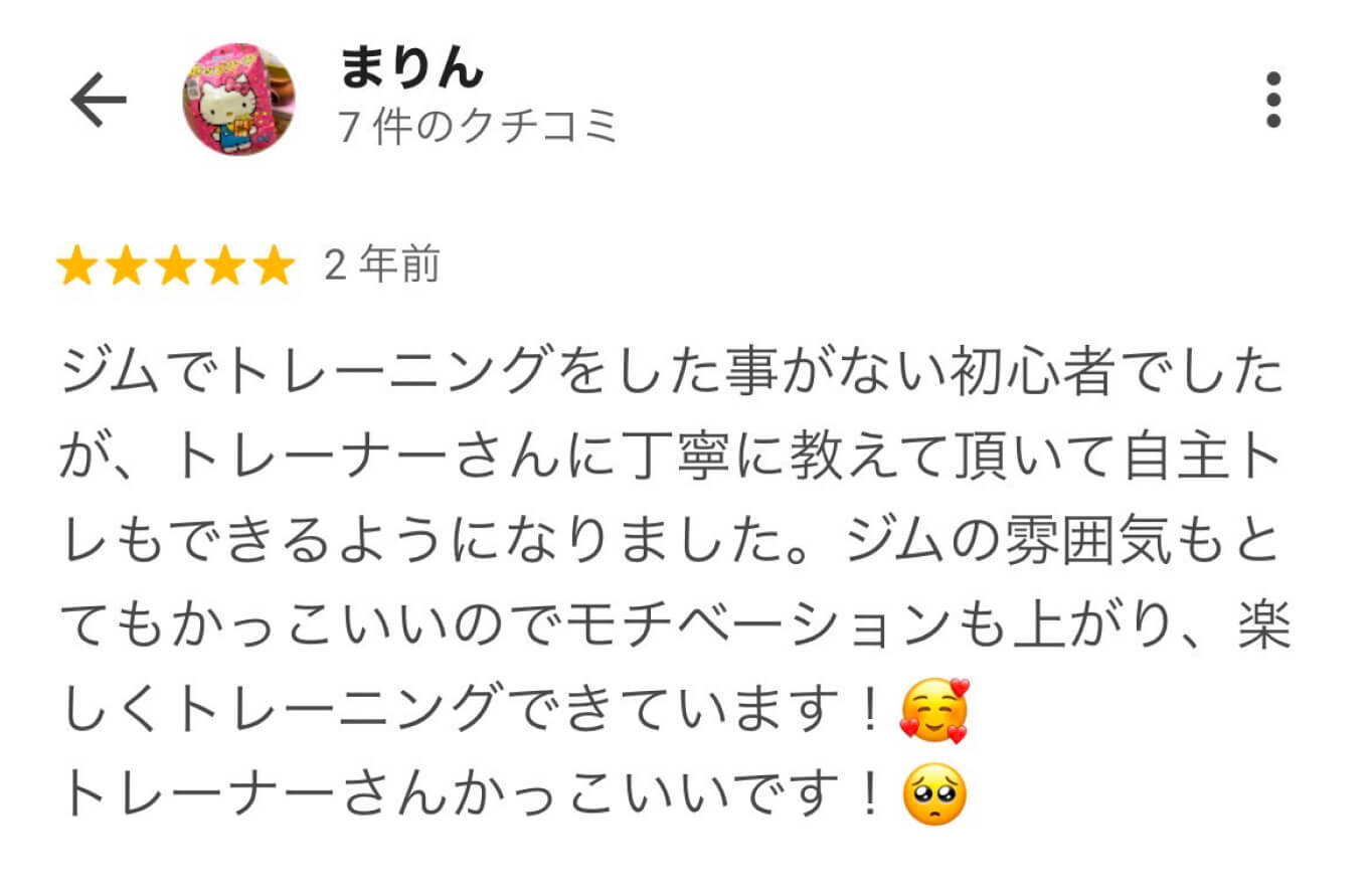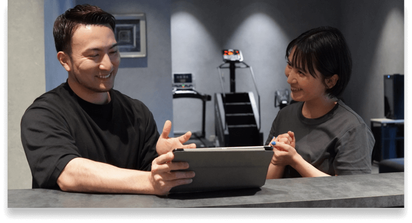 ただトレーニングを教えるだけのパーソナル指導ではなく、お客様がどんな時に楽しさを感じるのかを考えて、気持ちよくトレーニングできることを常に考えています。