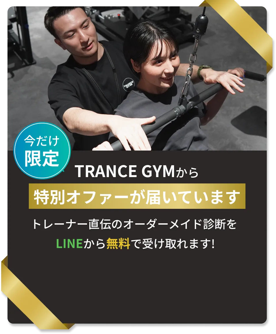 TRANCE GYMのトレーナーは、JADP認定のダイエットインストラクターの資格も保有しており、その知識と経験を基に長年考え抜き試行錯誤した”無理なく続けられる”ダイエット方法をお伝えしています。そのため一度ダイエットに失敗した人やダイエット初心者の方でも、安全に成功率を上げてダイエットやボディメイクが可能です。 -