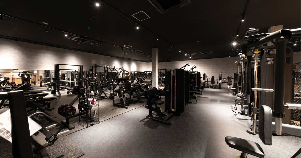 トレーニングエリアは黒を基調としたシンプルかつエレガントな造りになっており、最大限にトレーニングに集中できる空間作りをしております。また、施設内ではアロマを使⽤しており、視覚だけでなく嗅覚からも気持ちを切り替えられるように空間作りを徹底しています。