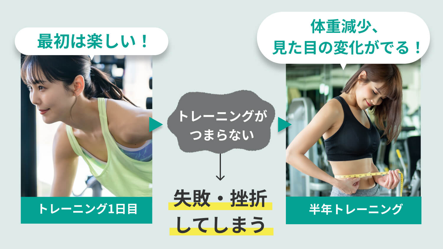 してもパーソナルジムとは違ったマシンや環境になり「本当にこれで合っているのか」と不安になり継続できないからです。